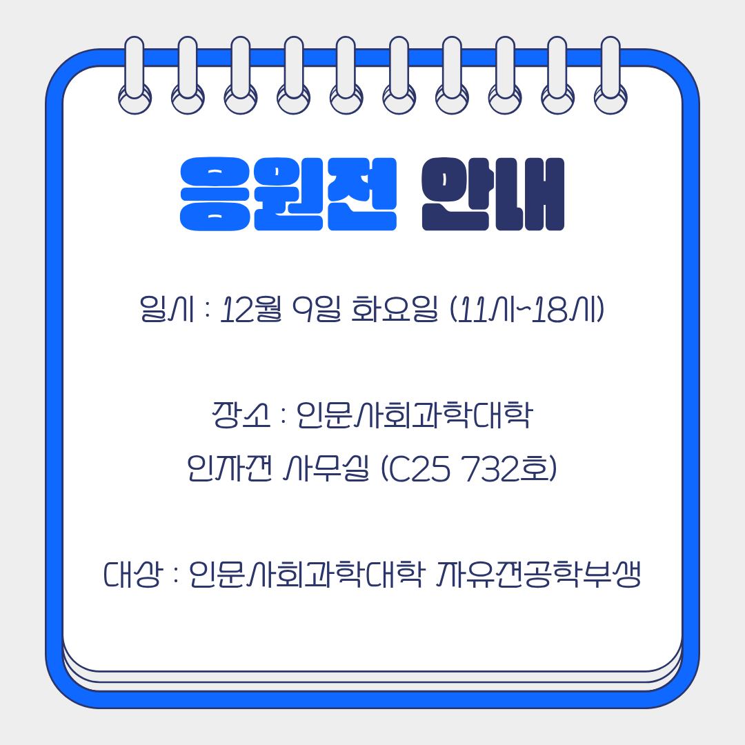 | 인문사회과학대학 자유전공학부 하반기 기말고사 응원전 개최 안내 | |||
