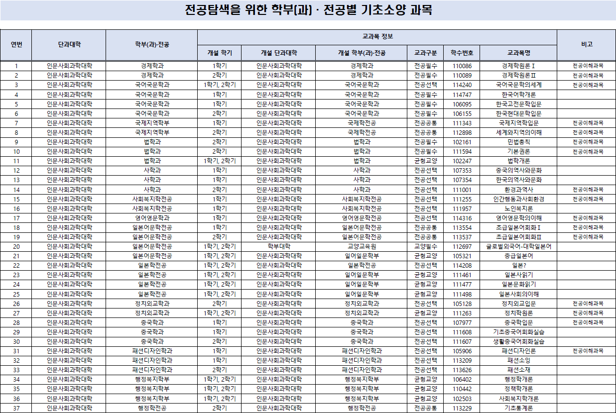 | 전공탐색을 위한 학부(과).전공별 기초소양 과목 안내 | |||